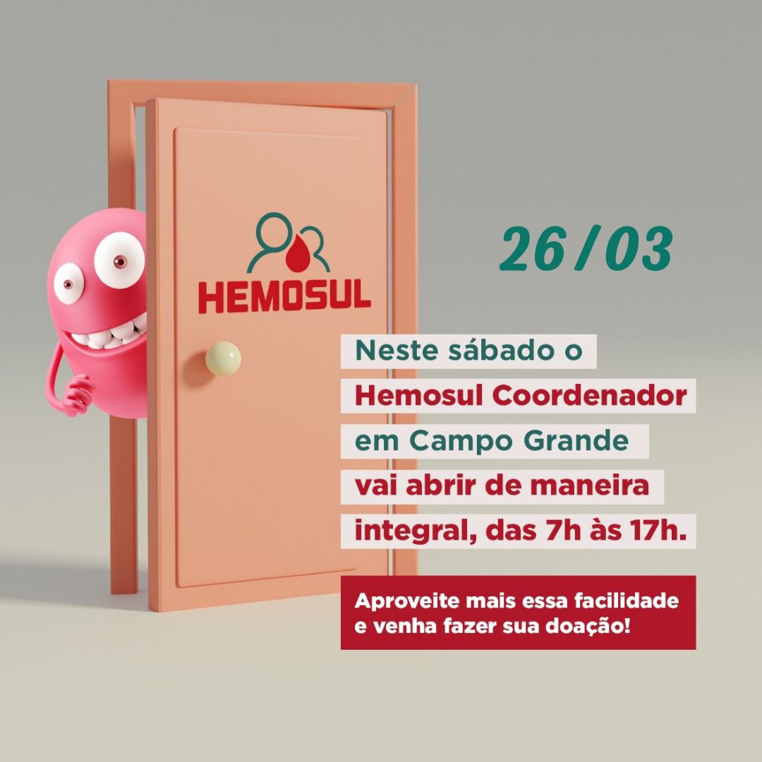 Campo Grande (MS) – Devido ao jogo da Seleção Brasileira pela Copa do Mundo 2022, nesta sexta-feira (2), o Hemosul Coordenador estará aberto até as 13h para receber os doadores de sangue. Já no sábado (3) estará funcionando integral, das 7h às